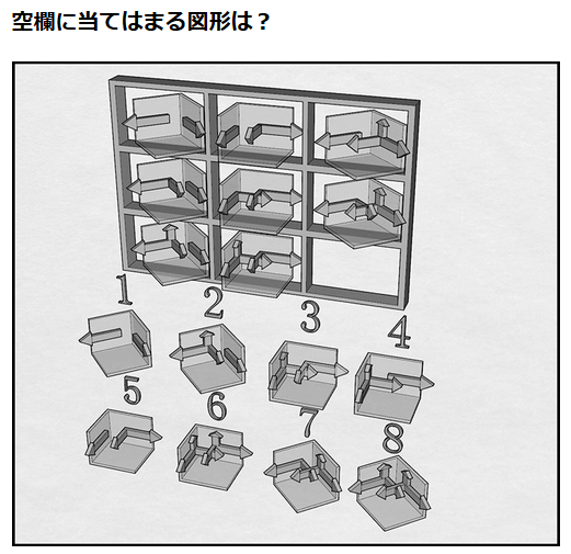 2019-01-19 『世界一難しい総合空間認識力テスト』攻略【問題7の答え・解答と解説(A Real Me!版・全12問)】 『世界一難しい総合空間認識力テスト』攻略 『世界一難しい総合空間認識力テスト』攻略-答えと解説 →『世界一難しい総合空間認識力テスト』攻略・全問題の答え・解答と解説一覧(A Real Me!版・全12問)に戻る 問題7の解答は「8」